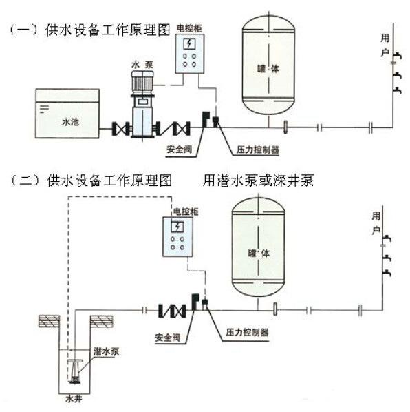 2)罐體為密閉裝置,氣水不相接觸,能充分保證水質(zhì)不受外界污染。