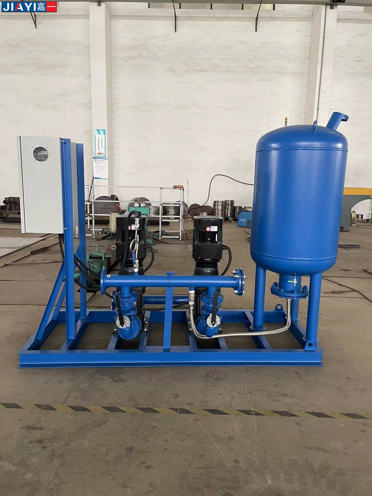 由囊式壓力罐、水泵、控制箱、底架、壓力感應裝置、管道閥門等組合而成,是一種兼有升壓、調節、儲水、供水等多種功能的常用供水設備。